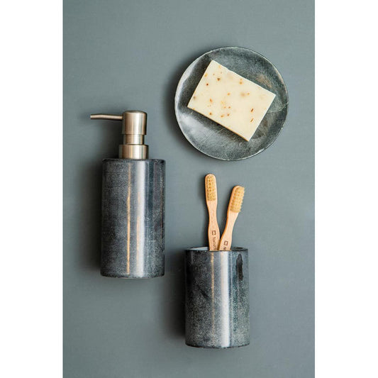 Super-soft cotton in muted tones – easy to wash and fast to dry. - Ceramic Toothbrush Holder: