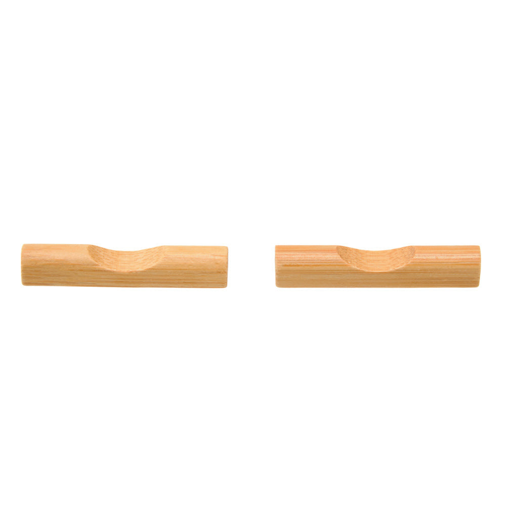This six piece sushi set has a traditional and sleek style. It includes two pairs of wooden chopsticks and wooden rests, contrasting with two matte black ceramic dipping sauce dishes.