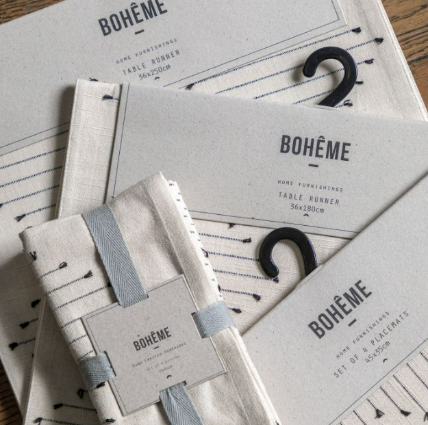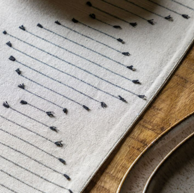 Beautifully subtle style for your table, with natural cotton linen offset by delicate graphic diamond weave embroidery.