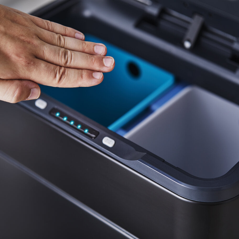 This 50L Recycling Sensor Bin is perfect for fuss-free hygienic waste disposal. Complete with infrared technology, you can open the bin hands free, although it can be used manually at the touch of a button. Ozone Filter Fresh technology helps to remove unpleasant odours from within in the bin, whilst a carbon filter absorbs moisture. Just press and hold the button for 5 seconds to begin the one minute cycle. There are two 9L compartments and two 11L compartments that will keep waste expertly separated for fuss-free waste disposal. The inner buckets are removable and require a simple wipe clean with a damp cloth to maintain the pristine finish, whilst the body is constructed from stainless steel, with a fingerprint proof coating.