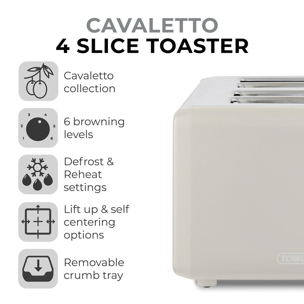 Tower Cavaletto Vintage 4 Slice Toaster - Latte