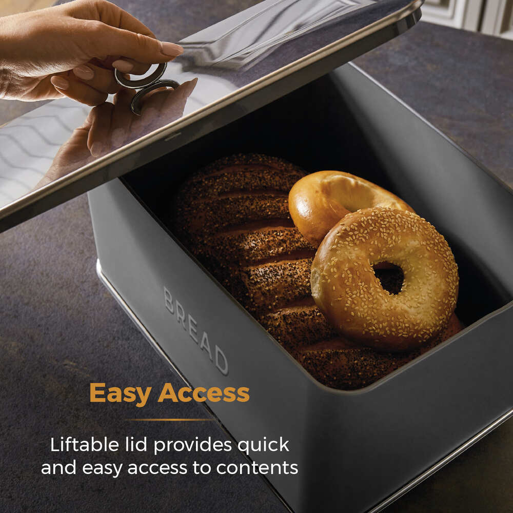 Store all your favourite baked goods in this bread bin by Tower, part of the beautiful Renaissance design collection. This stylish storage solution teams together a unique look of classical antiquity with modern chromed accents, whilst also providing an efficient storage solution. The spacious inner compartment offers plenty of room for a large loaf, ideal for the family. Made from durable iron, it helps to maintain the freshness of your bread, so it always stays tasty for longer. A completely removable lid provides easy access to the contents and the bins clever rectangular shape ensures it fits neatly on top of your kitchen worktop